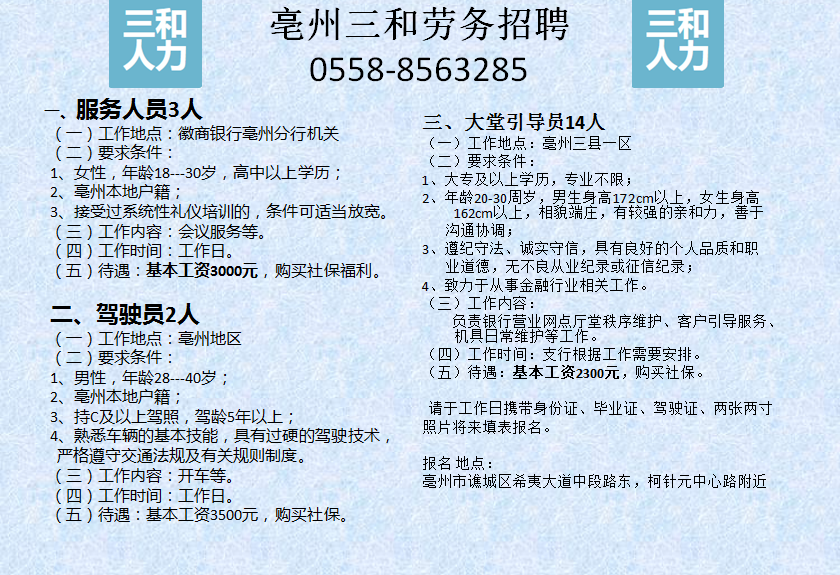 All rights reserved 版權(quán)所有 亳州市三和人力資源服務(wù)有限公司 www.jzzfu.com